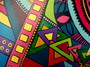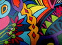 Détail 13. Fragment polychrome sous forme de photo d'un grand tableau acrylique (180x120) imaginé et peint par mes soins sur une grande table en bois. La table, si vous avez envie d'une vision d'ensemble est visible tant sur mon blog qu'en boutique sur ALM. Réalisation 100 % personnelle. Made by Isami des Couleurs