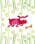 Chien rouge avec son os ! - Réalisé au crayon et à l'encre -